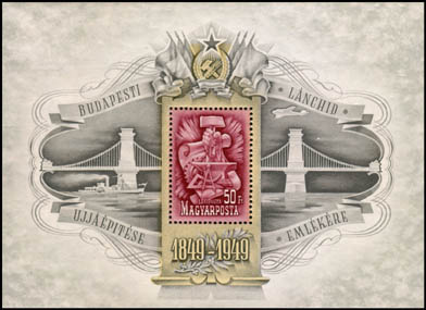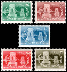 Centenary and reopening of Chain Bridge at Budapest to traffic - Set of 5 stamps + 1 souvenir sheet Issue date: 20th November 1949 |