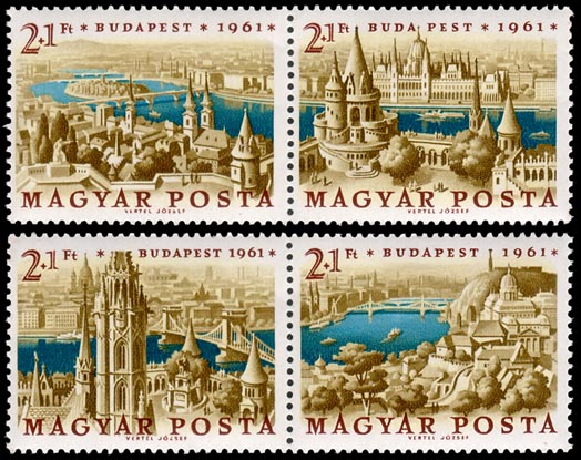 Set of 4 stamps (horizontal strip of 4 stamps, 2 of railway interest)