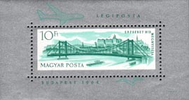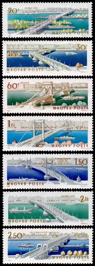 Opening of reconstructed Elizabeth bridge, Budapest Set of 7 stamps plus souvenir sheet Issue date: 21st November 1964 |
