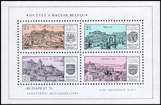 "Budapest 71" Philatelic Exhibition (2nd series): "Budapest through the ages" Part of a miniature sheet of 4 stamps Issue date: 26th February 1971 |