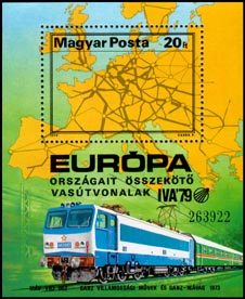 | 20 fo | Railway map of Europe on stamp; V63002 electric locomotive and passenger cars on the border of the souvenir sheet | |