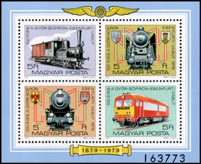 Centenary of Györ-Sopron-Ebenfurt Railway Twin issue with Austria Issue date: 19th October 1979 |