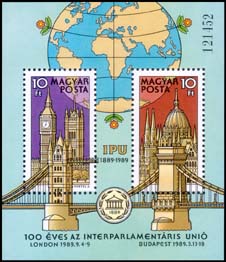 Interpaliamentary Union centenary Souvenir sheet of two 10fo stamps Issue date: 13th March 1989 |