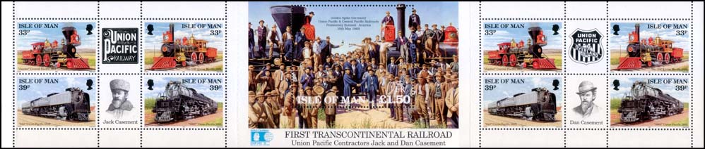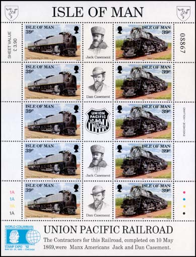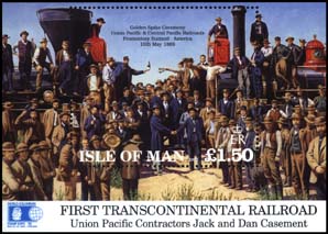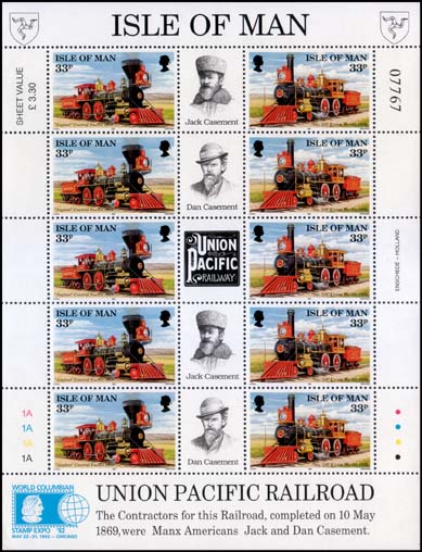 World Columbian Stamp Expo: Construction of the Union Pacific Railroad, 1866-1869 Two 33p and two 39p stamps in horizontal pairs, issued in sheetlets of 5 pair with labels between Issue date: 22nd May 1992 |