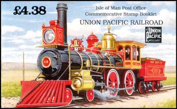Booklet back cover 4-4-0 Central Pacific Railroad "Jupiter" steam locomotive, 1869 Note: The inside cover reports historical notes and explanations of the stamps