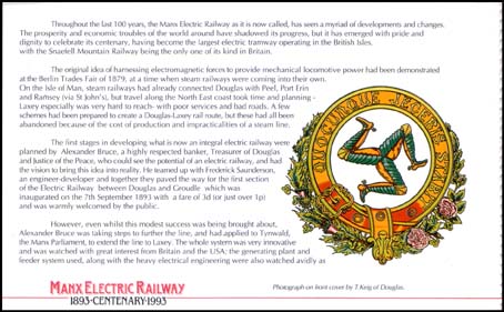 Inside Cover Logo and historical notes on Manx Electric Railway Click on the page to enlarge it |