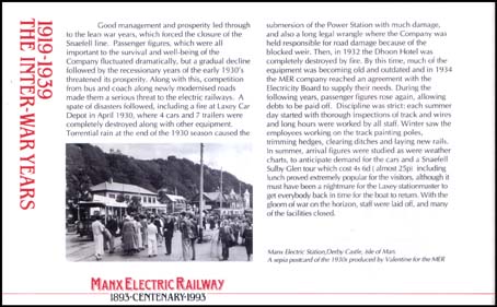 Back page of 2nd interleaf 1930 sepia postcard with Derby Castle Station; more historical notes Click on the page to enlarge it |