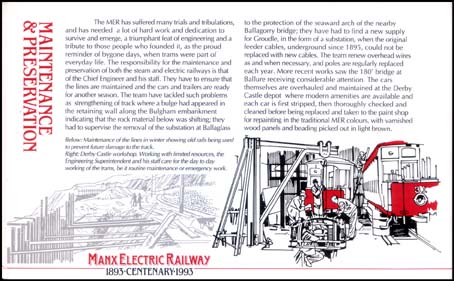 Back page of 3rd interleaf Notes on maintenance & preservation; drawings of lines maintenance in winter (left) and Derby Castle workshop (right) Click on the page to enlarge it |