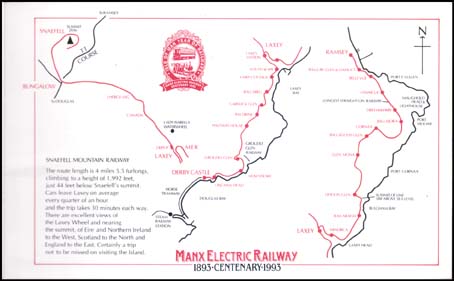 Inside back cover Logo and maps with lines of Manx Electric railway and Snaefell Mountain Railway Click on the page to enlarge it |