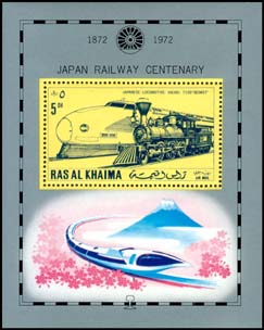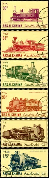 Japanese locomotives Set of 6 stamps (serigraphic print on yellow paper) Issue date: September 1971 |