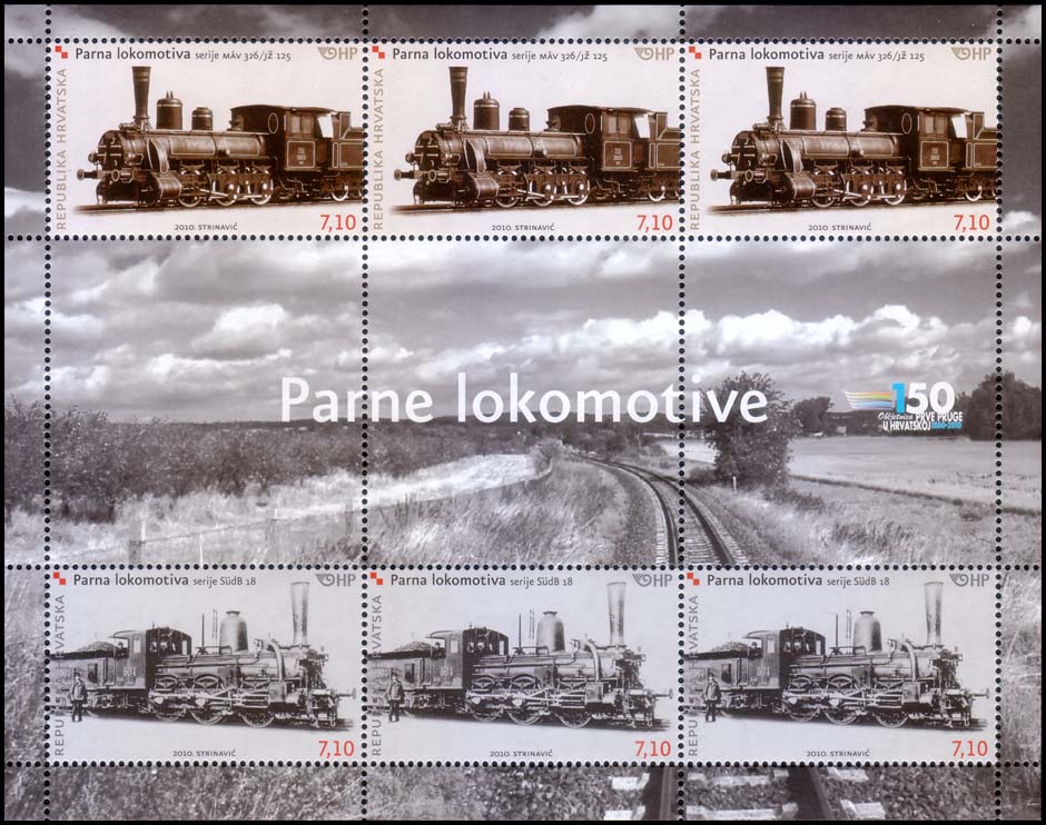 150th anniversary of Croatian Railways - Set of two 7.10d stamps issued in minisheets with three of each stamp