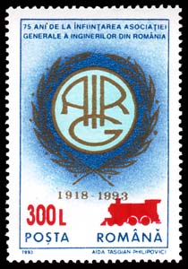1993 75th anniversary of General Association of Romanian Engineers issue, overprinted and surcharged