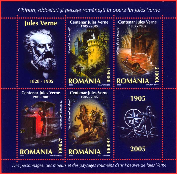 Jules Verne centenary - Sheetlet of 4 stamps plus 2 labels