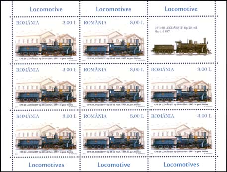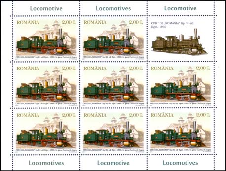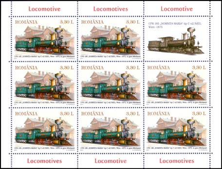Steam locomotives Set of 4 stamps issued in sheetlets of 8 stamps plus vignette Issue date: 26th October 2011 |