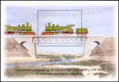 4-6-0 steam locomotives 8003 and 8008 of CFR, axles 2-C n4v on a bridge 1901 (designextending into border |