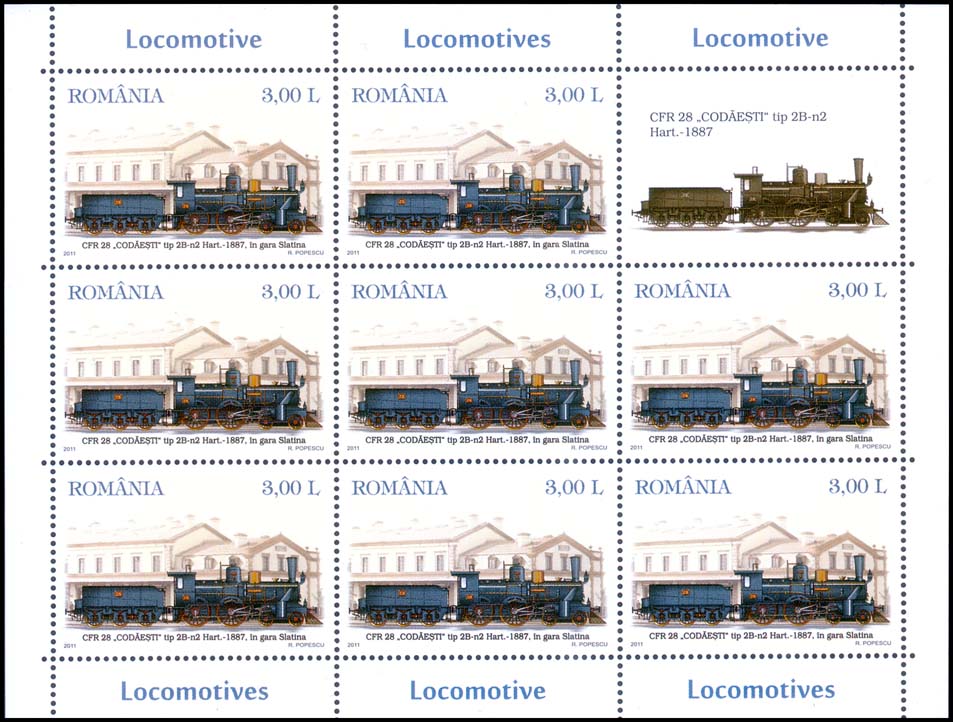 Steam locomotives - 2nd stamp of a set of 4, issued in sheetlets of 8 stamps plus vignette