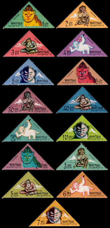 Set of 15 stamps (various triangular designs) Issue date: 12th October 1966 |