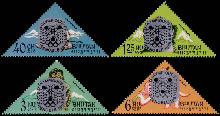 Winter Olympics: Abominable snowman (stamps of 10/12/66 overprinted in silver) - Set of 4 stamps