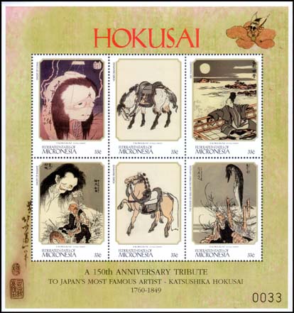 Painting by Hokusai (1760-1849) Part of a miniature sheet of six 33c stamps Issue date: 20th July 1999 |